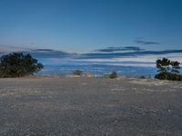 This is an image of a rugged dirt road in Los Angeles, California, USA. The road leads through a scenic landscape of mountains and open spaces. The surface is covered in sand and gravel, providing a rugged and recreational off-road experience. At dawn, the view from Mulholland overlooks the nature and beauty of the rural surroundings. This photo captures the emotional connection that people have with the natural environment and the sense of adventure that comes from exploring the off-road tracks of California.