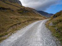 This image captures a rugged and gloomy landscape in Austria, Europe. The gloomy grey sky contrasts with the grassy surface and rugged terrain. A road, made of gravel and dirt, cuts through the highlands, providing an off-road track for adventurous travelers. The steep slopes and rough surface add to the challenging nature of this road. It offers a unique experience for those seeking to explore the remote and untouched beauty of the Austrian highlands. This photo captures the essence of the adventurous spirit and the raw natural beauty of Austria's landscape.