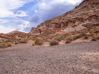 This stock photo shows a rugged desert terrain in California, USA. The sky is gloomy with grey clouds, creating a gloomy atmosphere. The landscape is dominated by rocky bedrock, gravel surface, and sandy areas. Vegetation is sparse, with only a few plants and shrubs visible. The open space and remote location provide an off-road experience for nature enthusiasts. In the distance, a mountain can be seen, adding to the scenic beauty of the area. The photo captures the natural beauty and rawness of the California desert landscape.