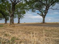 A rural European landscape with gravel and dirt roads winding through fields and agricultural areas. Clouds fill the sky on a sunny day, highlighting the natural beauty of Germany's countryside.