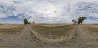 Rural European landscape with agriculture fields. Gravel and dirt roads cutting through the fields under a cloudy sky. A serene day capturing the essence of Germany's countryside.