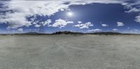 a panoramic image of clouds and mountains on the horizon with the sky above them
