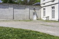 A classic architecture property in rural Ontario. The building with a window facade is surrounded by lush vegetation and green grass. A dirt road leading to the property adds to the historic charm.