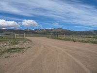 A rural landscape in Colorado, USA. Open spaces with dirt and gravel roads stretch into the distance. Clouds dot the sky on a sunny day, creating a picturesque scene of nature's beauty.