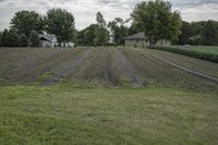 This is an image taken in Bancroft, Iowa, USA. The photo showcases an open rural area with a grey sky above. In the foreground, there is a stretch of grass, a small house, and a barn. Behind the house, there is a tree and a shed. The image depicts a typical day in the countryside, with vast fields, open spaces, and agricultural infrastructure. This scene captures the simplicity and serenity of rural life in Iowa.