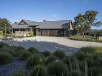 A picturesque view of a rural property in Los Angeles, California. The lush green grass and trees create a serene landscape. The residential home with a gravel courtyard and a barn adds to the charm of the real estate.