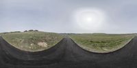 A scenic view of a rural road in California, surrounded by lush green fields and rolling hills. The road stretches into the distance, with a majestic mountain towering above. A perfect dawn drive in the natural beauty of California.