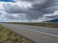 A rural road in Colorado cutting through a beautiful landscape. The asphalt road leads into the distance with clouds dotting the clear blue sky. A perfect day to enjoy the beauty of nature.