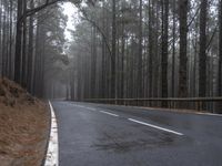 A gloomy day in Tenerife, Spain. The grey sky and fog create an emotional landscape. Wet roads and low visibility make for a challenging drive. Tree-lined rural roads traverse the forested landscape.
