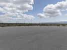 an empty parking lot with a few white clouds overhead and many blue sky above the rest