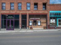 A classic architectural profile of a rural road in Utah. The road leads to a charming town with storefronts and a cinema. Clear skies above add to the picturesque urban scene.