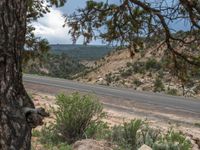Aerial view of an elevated road in rural Utah. The road cuts through the picturesque landscape, with mountains in the foreground. Clear skies and clouds add to the scenic beauty.