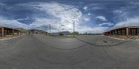 the camera pano shot of a road in front of a stop sign on a corner