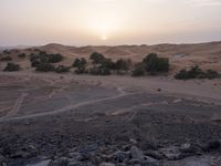 Sahara Desert Landscape at Dawn with Sand Dunes and Rocks