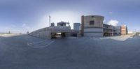 An aerial view of Salt Lake City at dawn, showcasing the urban design and modern architecture. The concrete streets and parking garages create an open space in the city. The straight road leads to the elevated parking deck, casting hard shadows in the morning sun.