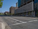 A bustling intersection in Salt Lake City, Utah, with modern office buildings towering over the urban landscape. Clear skies cast hard shadows, emphasizing the straight road leading to the business district.