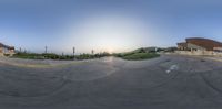 A skateboarder practices stunts on a straight road in Salt Lake City. Modern architecture and open spaces provide a perfect backdrop. Clear sky and concrete streets create an urban profile.