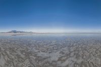 Open space in Salt Lake City, Utah, showcasing a breathtaking landscape of mountains and the Salt Lake. Clear sky contrasts with the salt desert, creating a serene day in the heart of nature.