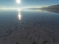 A serene landscape in Salt Lake City, Utah, with clear blue skies and mountains in the distance. The sun shines brightly over the open desert terrain, highlighting the salt flats. Nature's beauty on a sunny day.