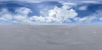 Vast salt flats stretch under a sunny skydome in the Salt Lake desert. Endless open spaces reflect the sun's brightness with scattered clouds, creating a stunning environmentdome landscape.