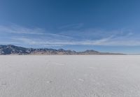 This image captures the breathtaking landscape of the barren desert in Utah, USA. The clear day reveals the majestic mountain range in the background. The open space and lack of vegetation highlight the vastness and natural beauty of the Salt Lake area. The striking contrast between the barren desert and the towering mountains creates a stunning composition. This photo represents the unique and picturesque scenery of Utah's Salt Lake region.