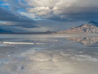 A breathtaking salt lake landscape in Salt Lake City, USA. The open space under a sunny sky showcases the majestic mountains and salt formations. A perfect day in the Utah desert.