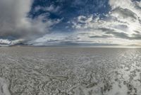 A scenic landscape of the Salt Lake desert in Utah, with mountains in the background under a sunny sky. Salt Lake City's open spaces and salt formations create a unique natural packshot.