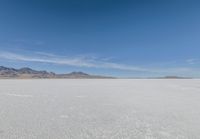 This stunning stock photo captures the natural beauty of Salt Lake in Utah, USA. The open space landscape features majestic mountains as the backdrop, creating a visually captivating scene. The bright and clear day allows for an unobstructed view of the desert terrain and the picturesque salt lake. The image showcases the untouched beauty of nature, with its vast open spaces and undulating mountains, making it perfect for any project or design. The packshot of this image highlights the unique salt lake and emphasizes its natural charm. Additionally, the photo captures the contrails left by passing planes, further enhancing the overall aesthetics of the composition.