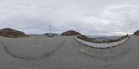 Aerial view of San Francisco at dawn, with a skateboarder riding down an elevated road. The cityscape stretches out towards the coast, lined with residential houses and cars. Overlooking the ocean, the grey sky contrasts with the vibrant city below.