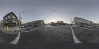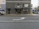 A view of a busy street intersection in San Francisco, with classic architecture and a vibrant urban atmosphere. The road surface is lined with yellow lines and curbs. Traffic and pedestrians crosswalk in all directions, creating a bustling scene.