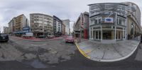 A unique perspective of San Francisco's classic architecture. The fisheye lens captures the intricate details of the city streets, showcasing the blend of urban infrastructure and historic buildings. Multiple angles add depth to this vibrant scene.