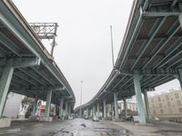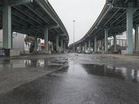 This stock photo showcases the urban infrastructure of San Francisco during the day. The cityscape features impressive architectural buildings, roads, bridges, and parking lots. The reflection of the wet surfaces adds a unique charm to the image. The concrete and asphalt road surfaces are seen connecting different lanes and thoroughfares. The metropolitan area is bustling with life as people and vehicles move around. The industrial factories and buildings create a dynamic atmosphere. The image captures the essence of the city's transportation system and skyways, with the beautiful urban skyline and the sky as a backdrop.