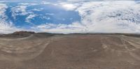 Aerial view of a sandy beach with an expansive ocean and sky in the background. The beach stretches out into the horizon, creating a picturesque landscape. This natural environment is perfect for off-road adventures and exploring the surrounding terrain.