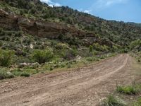 Off-road adventure on a sandy track in the breathtaking landscape of Utah. Clouds fill the sky on this sunny day. The mountainous terrain offers a challenging and scenic route for nature enthusiasts.