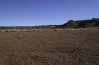 This captivating stock photo showcases a scenic desert landscape in Utah, USA. The image features a vast expanse of dirt and gravel road surrounded by breathtaking mountains and open space. The rugged bedrock formations and red rock canyonlands add to the natural beauty of this incredible scene. The clear sky and vegetation accentuate the pristine quality of this remote location. With its stunning landscape, this photo is perfect for illustrating the wonders of nature, road trips, and exploring the great outdoors.