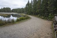 Scenic dirt trail near the water with trees and a canoe - Ontario, Canada