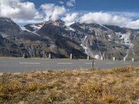 A beautiful landscape in Austria, Europe. The image shows a highway stretching through the middle of a mountainous valley, surrounded by snowy mountains in the distance. The clear sky and day lighting enhance the natural beauty of the road and mountain scenery.