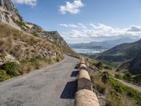 This image captures the breathtaking coastal landscape of Mallorca, one of the beautiful Balearic Islands in Spain. The picture showcases a winding road made of asphalt, which runs along the coast and offers stunning views of the surrounding mountains, ocean, and valley. The clear blue water sparkles under the bright sunlight, while fluffy clouds decorate the blue sky. An Armco barrier provides safety along the road. This picture represents the perfect blend of nature and man-made infrastructure, highlighting the unique beauty of Mallorca and the Balearic Islands in Europe.