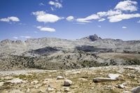 This beautiful stock photo showcases a scenic mountain landscape, featuring a range of majestic peaks surrounded by an open space. In the foreground, rocks add texture and interest to the scene. The sky stretches above, creating a vast and captivating backdrop. With its combination of mountains, rocks, and the open sky, this image captures the essence of a picturesque mountainous environment. It would be a great addition to any project related to nature, outdoor adventures, or travel.
