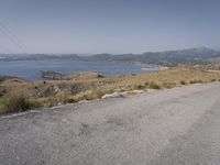 A person on a skateboard rides down the coastal road in Mallorca, Balearic Islands. The road, surrounded by highland mountains, offers panoramic views of the clear sky and the ocean. A perfect day to enjoy the breathtaking nature of Mallorca.