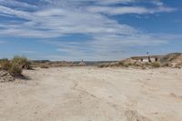 A picturesque road winds through the stunning desert landscape of Bardenas Reales in Navarre, Spain. The low and high sand dunes cover the elevated surface, creating a unique off-road track. With the clear blue sky and fluffy clouds overhead, it's a perfect day to explore the untouched beauty of nature. The gravel and dirt surface adds to the rugged charm of the desert, providing an adventurous experience for any traveler. Discover the fascinating Bardenas Reales in Europe and immerse yourself in this awe-inspiring sand street.