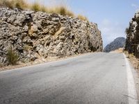 This stunning stock photo captures a scenic road in Spain, with a breathtaking view of the mountains in the background. The road, made of asphalt, cuts through the vibrant green grass of the landscape. It is a beautiful sunny day, with fluffy clouds decorating the blue sky. The natural beauty of this location is enhanced by the presence of trees and a rock wall, adding an element of charm and authenticity. This picture perfectly showcases the incredible nature and landscape found in Spain, making it an ideal choice for your design projects or website visuals. Discover the beauty of Europe's Balearic Islands in this captivating image.
