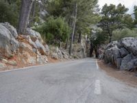 A scenic road in Spain winding along the coastal cliffs, with breathtaking views of the ocean and mountains. The road surface is asphalt, surrounded by lush vegetation and rock walls. Explore the beauty of nature in Balearic Islands, Europe.