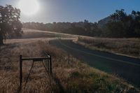 This stock photo features a scenic rural landscape with lush vegetation, green grass, and a clear blue sky. The image showcases a winding road surrounded by trees and farmland, creating a peaceful and serene atmosphere. The sunlight illuminates the landscape, casting soft shadows and highlighting the natural beauty of the area. The road surface is made of asphalt, providing a smooth and comfortable driving experience. The photo captures a sunny day, with the sun visible in the clear sky. It is a perfect representation of a tranquil countryside scene, ideal for illustrating concepts related to nature, agriculture, and peaceful living.