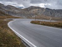 A scenic rural road in Austria winding through the mountains. The asphalt road curves gracefully as it traverses the picturesque European landscape. Clouds drift overhead on a beautiful sunny day.