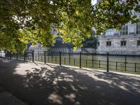 This stock photo captures a picturesque scene in Berlin, Germany, with a long walkway passing through the beautiful trees by the riverbank. Boats can be seen floating on the river. The blend of classic architecture, urban infrastructure, and lush vegetation creates a charming ambiance in this residential area. The sunlight filters through the leaves, casting shadows on the asphalt road, grass, and fence. This well-maintained public space is perfect for a leisurely stroll and offers serene reflections on the water surface. Explore the rich history and cultural heritage of Berlin, Europe by visiting the nearby museums and tourist attractions.