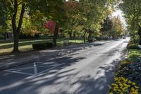 A scenic walkway in a suburban park in Ontario, Canada. Lush vegetation and deciduous trees provide a vibrant green backdrop. Sunlight filters through the branches, creating tints and shades. A perfect recreational space in Toronto's suburbs.
