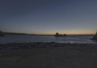 A serene coastal landscape in Portugal at dawn. The afterglow creates a mesmerizing contrast against the dark horizon. Waves gently crashing against the headland, reflecting the clear sky above. A perfect blend of nature and tranquility in Europe.
