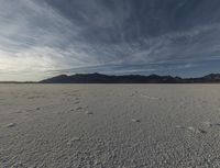 A serene landscape in Utah at dawn, with mountains in the distance and a calm lake reflecting the sky. The surface of the salt lake creates a unique atmosphere. Contrails streak across the horizon, adding an emotional touch to the natural environment.