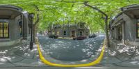 A street view in Shanghai, China, showcasing modern and classic architecture. Panorama mirror reflects the sunlight, illuminating the vibrant urban landscape. Buildings, storefronts, and pedestrian crossings create a dynamic scene in this bustling metropolitan area.